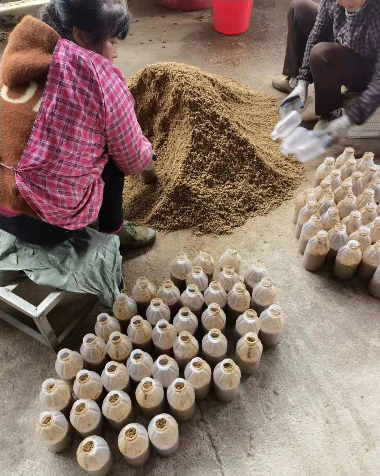 自2021年10月康美來集團下達2022年靈芝種植計劃任務后,康美來工廠菌種車間加班加點生產菌種,基地負責人黃總積極行動,采伐優質樹木,招聘當地農民工100多人加工菌棒,高標準推進靈芝基地生產進度。