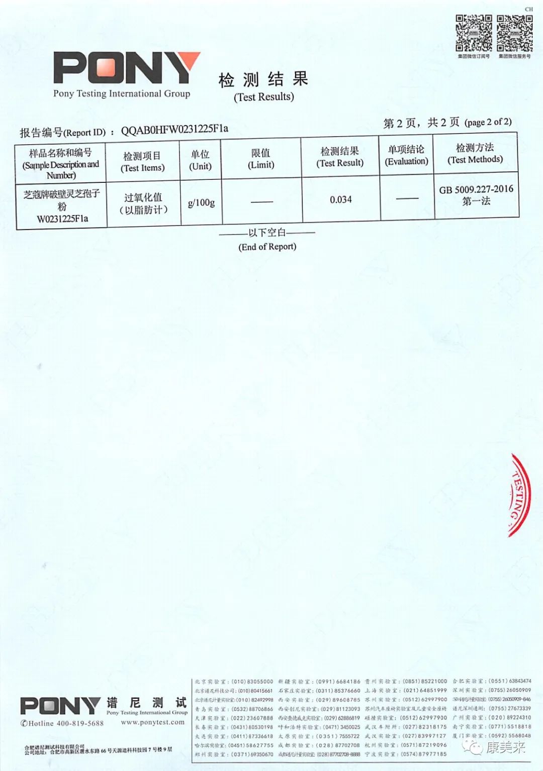 今年最近批次抽檢產品送第三方權威檢測機構檢測過氧化值,結果為0.034,遠低于藥品標準0.2。這是一個挑戰產品品質極限的關鍵指標,這是掌握核心科技的數據體現,這是康美來十八年工匠文化沉淀的成果。