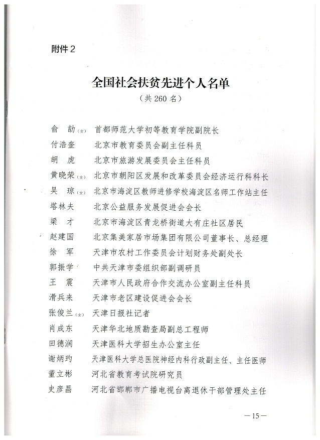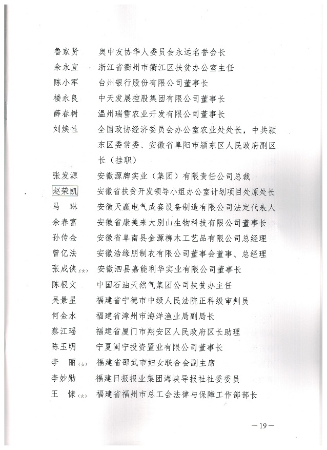 康美來公司董事長余春富在“全國社會扶貧先進個人名單”上榜上有名。
