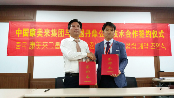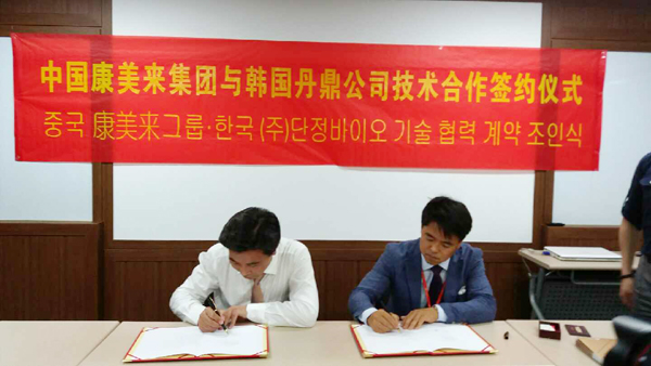 7月5日,余春富董事長代表中國康美來集團(tuán)與大韓民國丹鼎生物科技有限公司董事長鄭義洙簽訂高端產(chǎn)品技術(shù)合作協(xié)議。