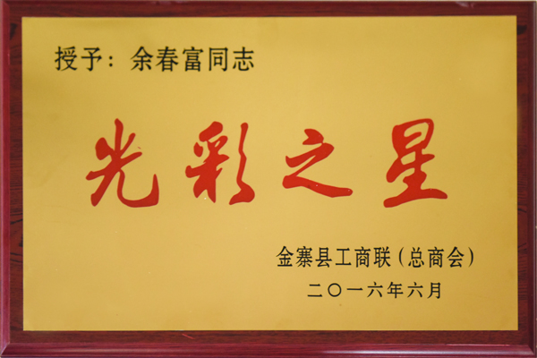同時(shí),縣政府有關(guān)部門為表彰先進(jìn),樹立榜樣,逐級(jí)推薦,授予余春富“光彩之星”榮譽(yù)稱號(hào)。