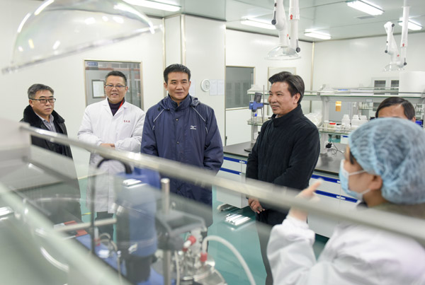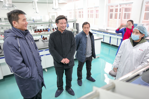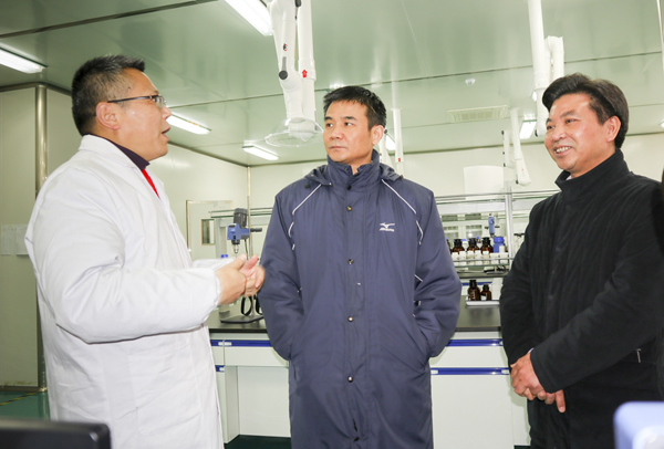 在實驗室王部長還特別關心科技人員,看到研發主任彭苗正在實驗中,向她詢問來自哪里,畢業哪個學校,工作幾年了,在六安生活是否習慣,細節中體現了市領導的關懷。