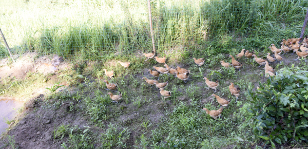 余董還前往大別山土雞養(yǎng)殖場,一只只土雞正在山林地吃蟲吃草,喝泉水。李福寶教授說,這些土雞現(xiàn)在已成為青年雞,非常健康。現(xiàn)在正處高溫氣候,要注意降溫和雞舍衛(wèi)生。