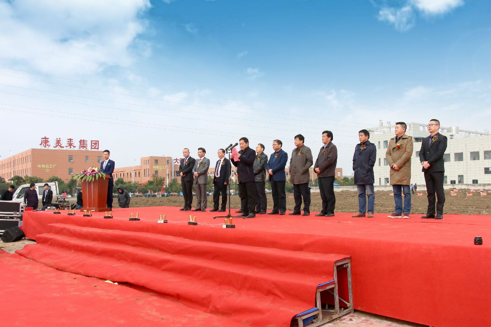 康美來集團副董事長趙欣、執行總裁趙巍程、毛華強、董事長助理韓林元、營銷后勤部總經理余煜航、集團董事胡吉英等公司高管出席儀式。各系統創始人及核心領導人出席儀式,為項目奠基培土。全國各地經銷商代表和來賓參加儀式。
