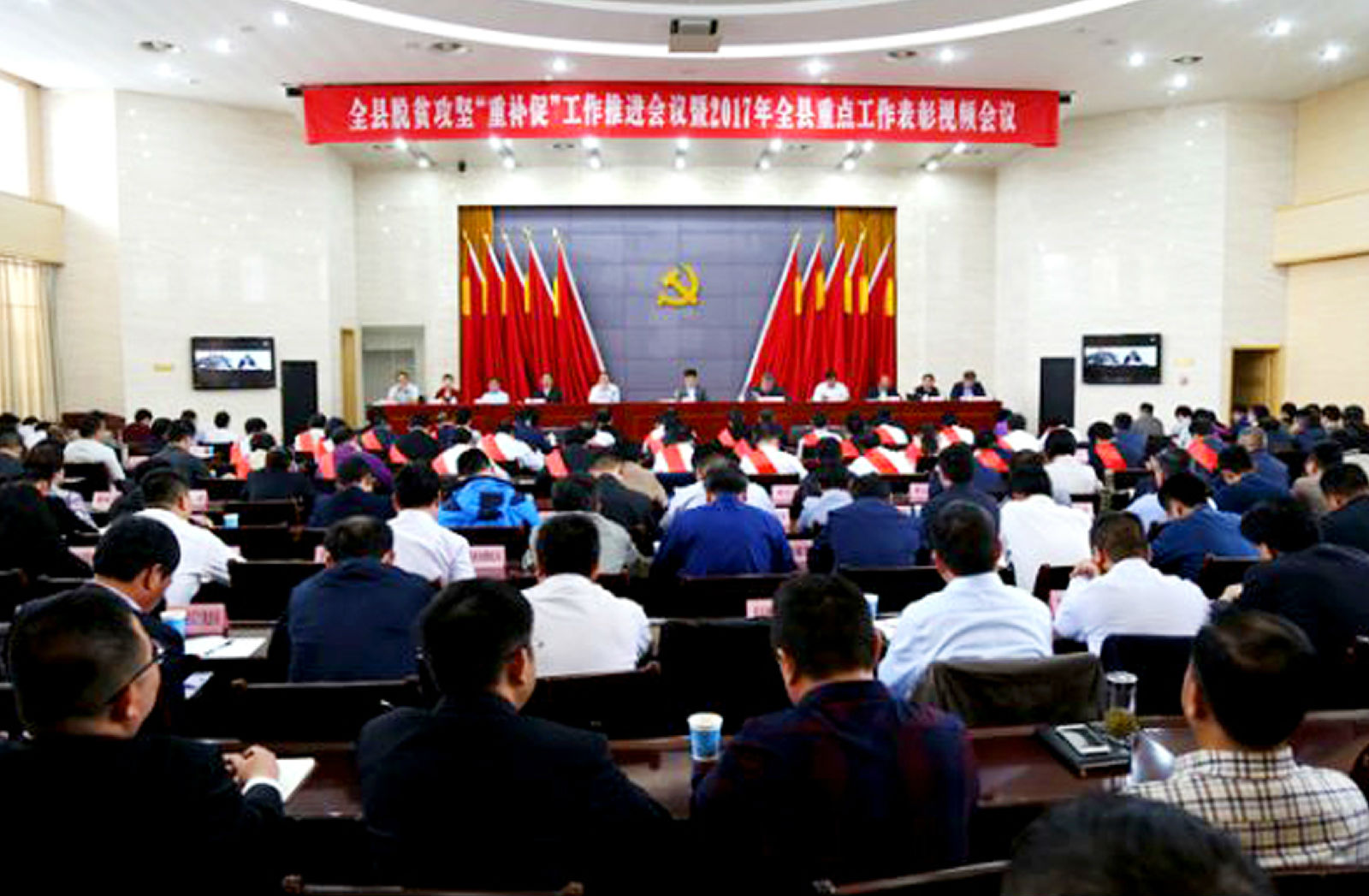 2018年5月8日上午,金寨縣脫貧攻堅“重精準、補短板、促攻堅”工作推進暨2017年全縣重點工作表彰視頻會在影劇院小會堂召開。縣四個班子領導出席會議,縣委副書記、縣長汪冬主持會議。