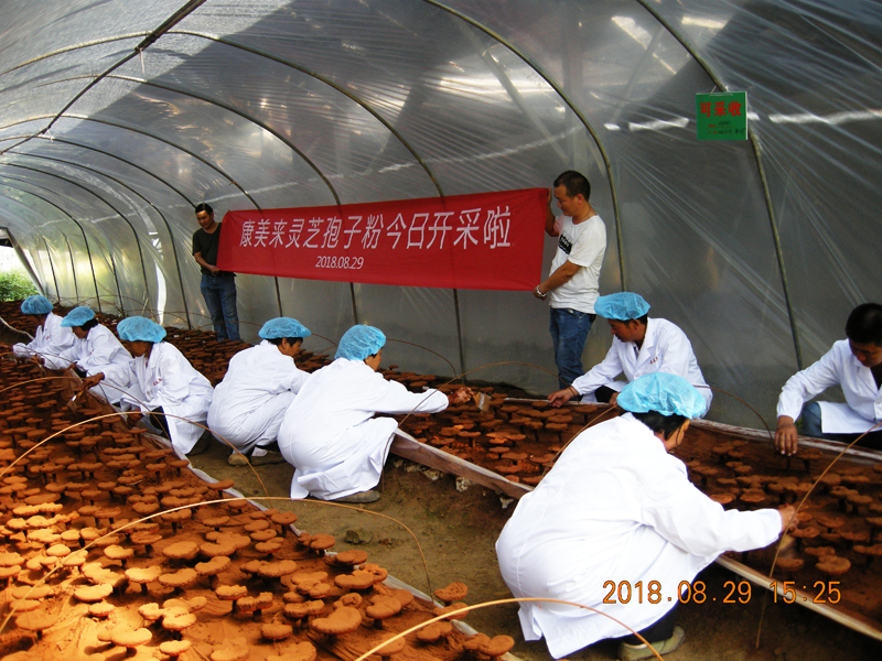 8月29日,大別山藍天白云,空氣清新,陽光燦爛,康美來大別山基地迎來了一年一度的靈芝孢子粉采收季節。
