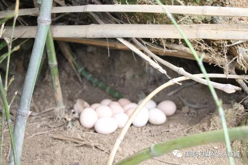 走進山林,山地上到處是一堆又一堆土雞蛋,八枚十枚堆在一起。幾只土雞伏在山地里不動聲色,原來是在靜靜的下蛋。