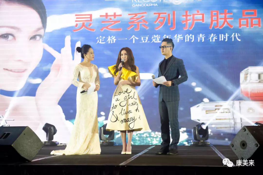 時尚女杰劉鋒、沈劍宏、李倩云分別作了新品體驗分享,表示康美來靈芝護膚產品優質、高端,美容效果明顯。