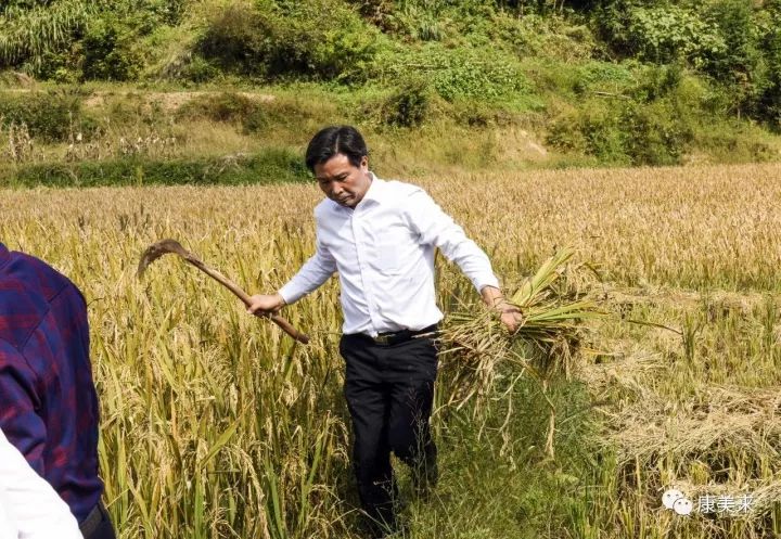 8日下午,余春富前往雙河鄉(xiāng)大畈村有機香稻基地。雙河有機香稻基地位于雙河鄉(xiāng)大畈村,基地負責人葉乃兵擁有十多年有機稻種植經(jīng)驗,是金寨縣著名種植能手。雙河基地有機香稻規(guī)模300畝,周邊山谷生態(tài)良好,海拔高達502米,屬高寒山區(qū)。綠色的山谷,金色的稻田,飽滿的谷穗,在微風中搖曳。老葉向余董匯報過兩天就可以收割,正在組織人力及準備工作。余董指示,收割后,馬上播種紅花草,秸稈還田,提高土壤有機質(zhì)水平,為明年生產(chǎn)打好基礎。總裁助理尹維龍陪同視察。