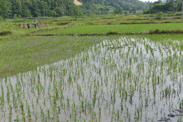 我們來到田邊,詢問大哥,原來他們在人工除草,這是第一次人工除草,是當地最原始的農業耕作方法。