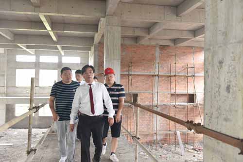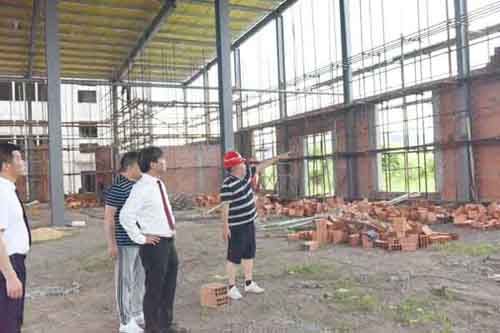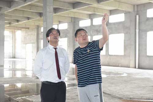 余董一下車便走進(jìn)霍山石斛保健品生產(chǎn)主廠房,向施工方了解工程建設(shè)進(jìn)展情況。