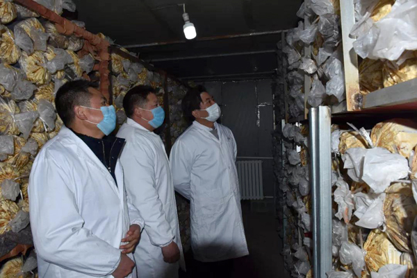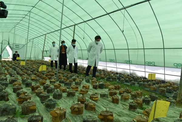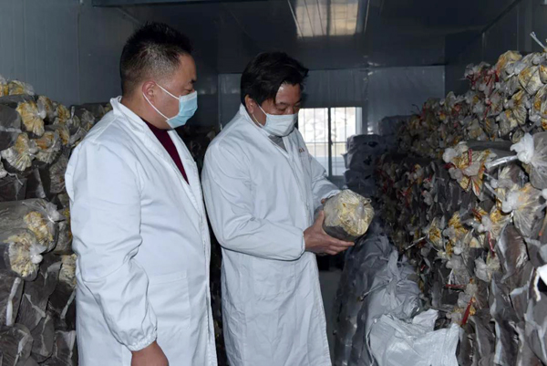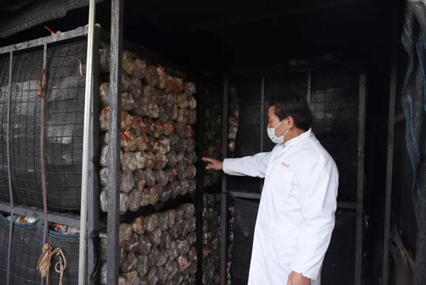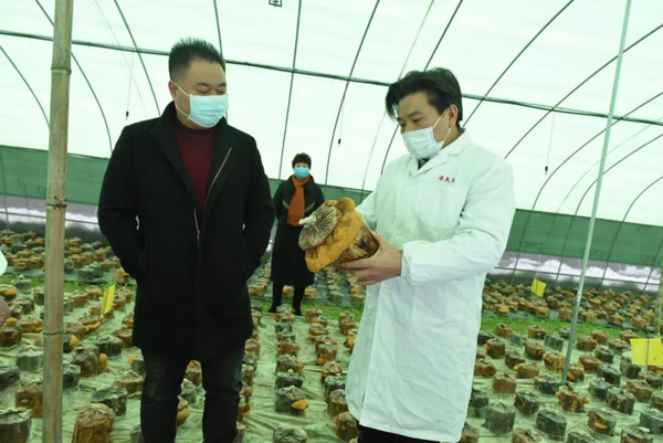 余董到基地最關心的是今年菌棒生產和養菌情況。來到新建的菌棒生產基地,基地負責人黃總介紹:完全按照公司制定藥材標準生產,選用最優最合適的多年生椴木生產菌棒。