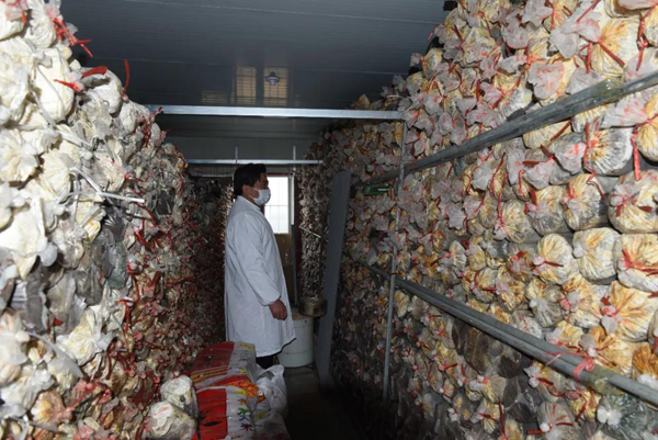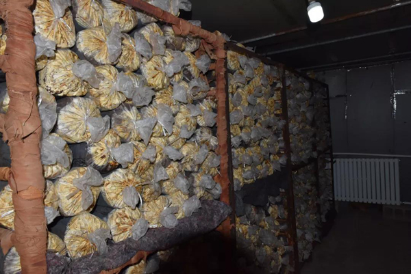 在養菌室,一排排菌棒正在養菌,基地負責人說:“這些菌棒都是去年11月--12月生產并開始接種養菌的,目前菌絲體生長情況良好。”