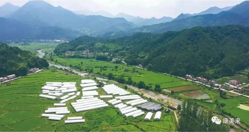 康美來藥材基地四面環山,森林、湶水、山谷、藍天、白云、靈芝、桑黃,以及云湶谷有機水稻,構成一幅美麗的鄉村畫卷。