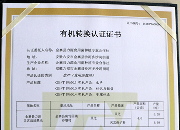 康美來靈芝基地藥材獲得“有機轉換認證證書”