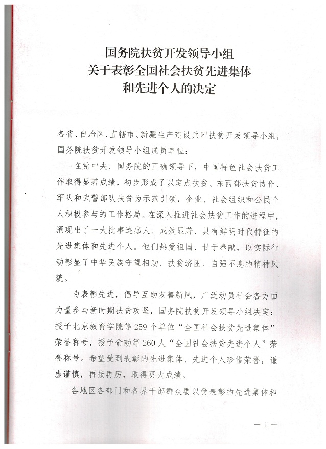 余春富同志榮獲“全國社會扶貧先進個人”稱號